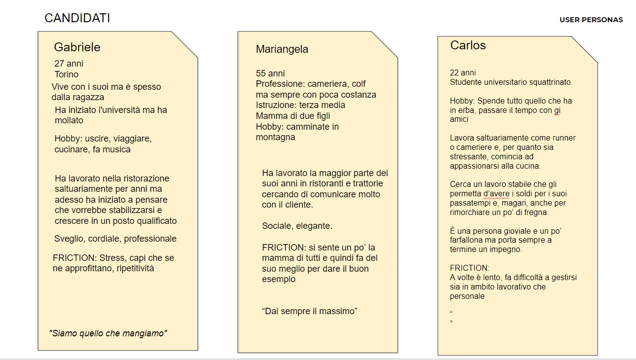 From my UX research, it resulted that the restaurateurs are very stressed in general, and taking the time to read CVs, call, interview, and make a try with candidates is their biggest pain. More in detail, CVs were often unclear, unscannable, and incomplete. Each one is different, each one is new fatigue.